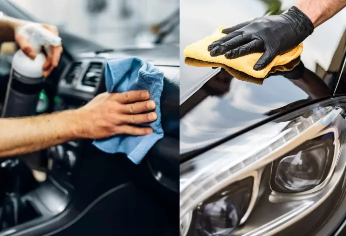 - Dépoussiérage et essuyage des surfaces plastiques et tableau de bord